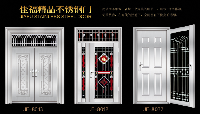 本公司成立于2004年,已有19年的生產(chǎn)進(jìn)戶門(mén)的經(jīng)驗(yàn)積累。公司現(xiàn)擁有鋼質(zhì)非標(biāo)門(mén)生產(chǎn)線、標(biāo)門(mén)生產(chǎn)線及不銹鋼門(mén)三條生產(chǎn)線,我公司專業(yè)設(shè)計(jì)、制造、銷售鋼質(zhì)系列進(jìn)戶門(mén)、防盜門(mén)、不銹鋼門(mén)等產(chǎn)品,擁有“宇佳?盈福”和“佳有福”、“家福.興隆”三個(gè)自主品牌和產(chǎn)品系列。公司引進(jìn)了先進(jìn)的生產(chǎn)技術(shù),配置了成龍配套的現(xiàn)代化生產(chǎn)流水線。產(chǎn)品工藝成熟,質(zhì)量上乘。同時(shí),公司廣納賢才,聚集了一批具有開(kāi)拓創(chuàng)新精神的各類高級(jí)管理和技術(shù)人才,建立了一套先進(jìn)的管理模式。